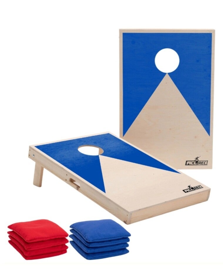 1 planche incliné, 8 sacs (4 bleu, 4 rouge).