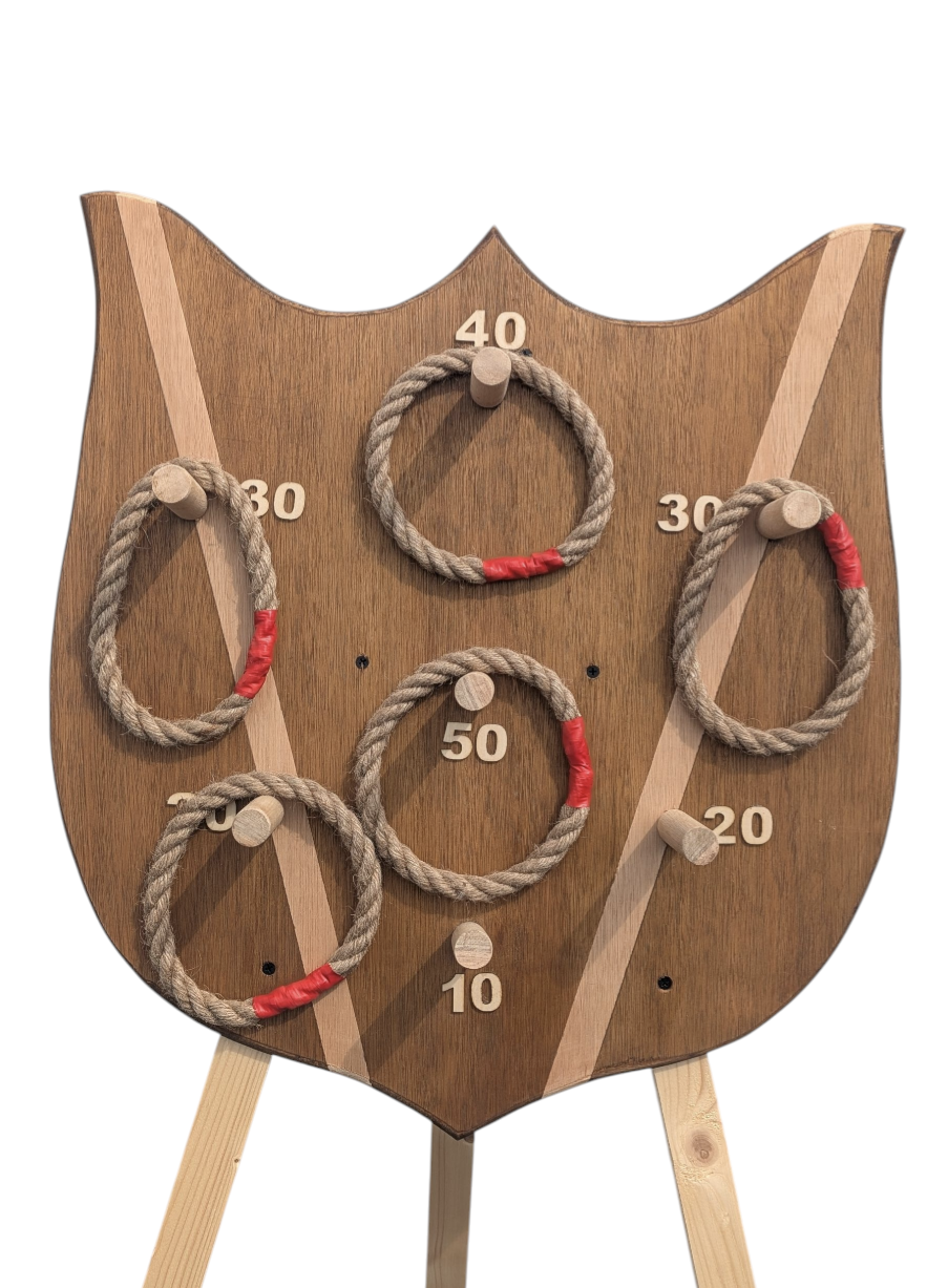 Lancez les 5 anneaux corde vers le blason pour marquer un maximum de points.
