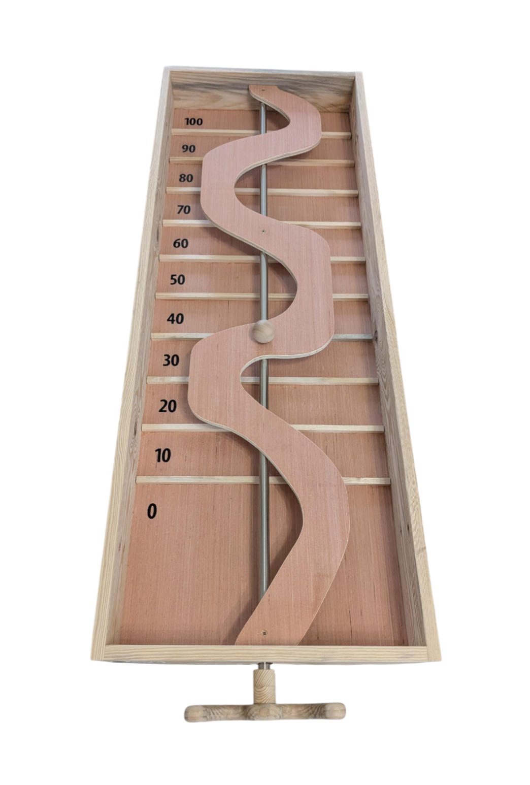 Plus la boule tombe loin, plus le joueur marquera de points.
