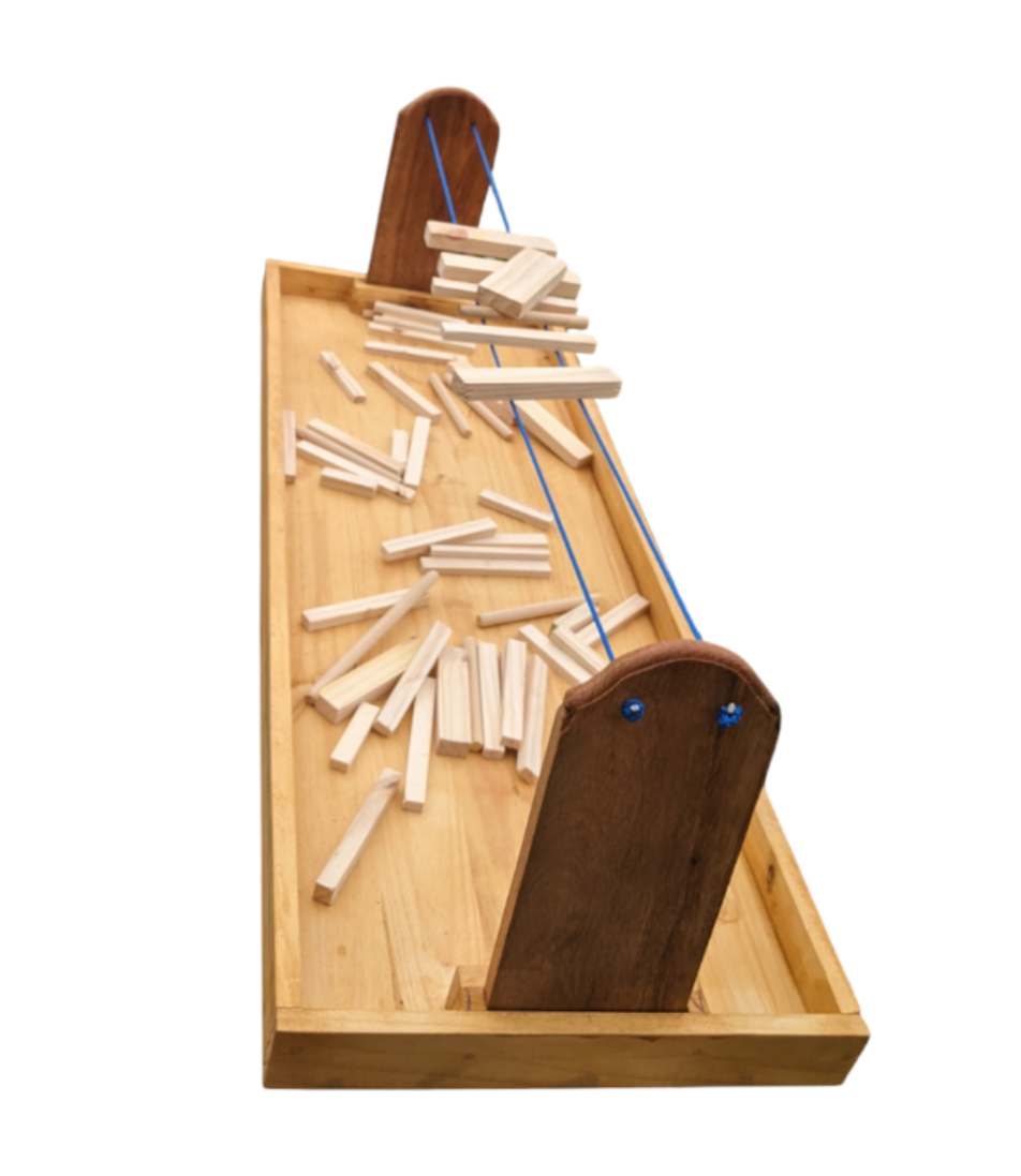 Lancer le dé, et mettre le nombre de morceaux de bois sur le pont.