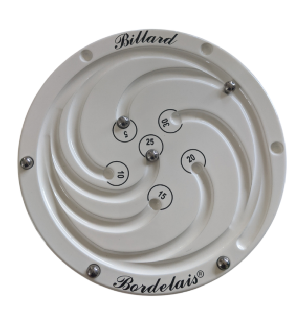 Ce Billard à spirale se joue à 6 billes, c’est un billard tactile comme le carrom (billard indien) et à 6 trous comme l’américain, mais à la différence dans le billard bordelais que ce sont les trous qui définissent la valeur des points et non pas les billes…