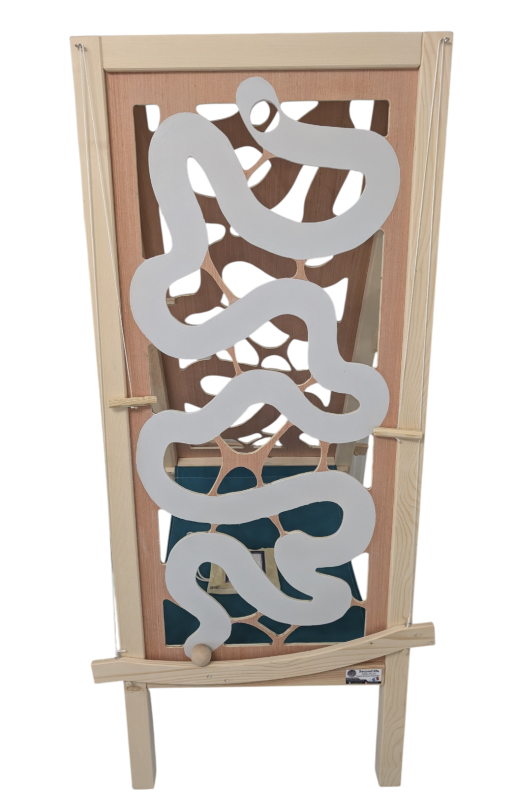 A l'aide des deux ficelles, monter les boules avec les bananes en suivant le parcours, jusqu'en haut en évitant les trous.